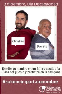 El próximo 3 de diciembre se conmemora el Día Internacional de las Personas con Discapacidad, y es por este motivo, que el Grupo Fundación San Cebrián ha puesto en marcha la Campaña #solomeimportatunombre para hacer ver a la sociedad que lo importante en las personas no es su discapacidad, sino su nombre, sus ideas, sus sueños, su historia de vida, sus metas...
